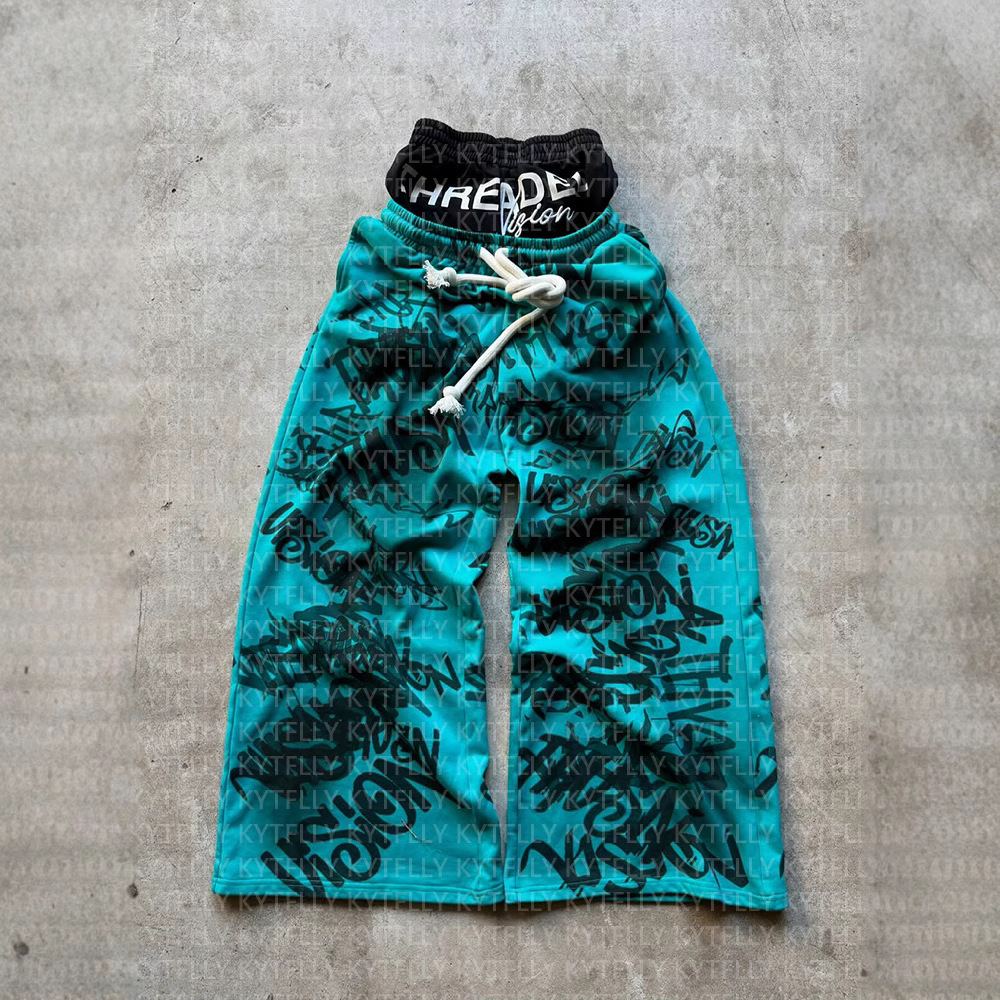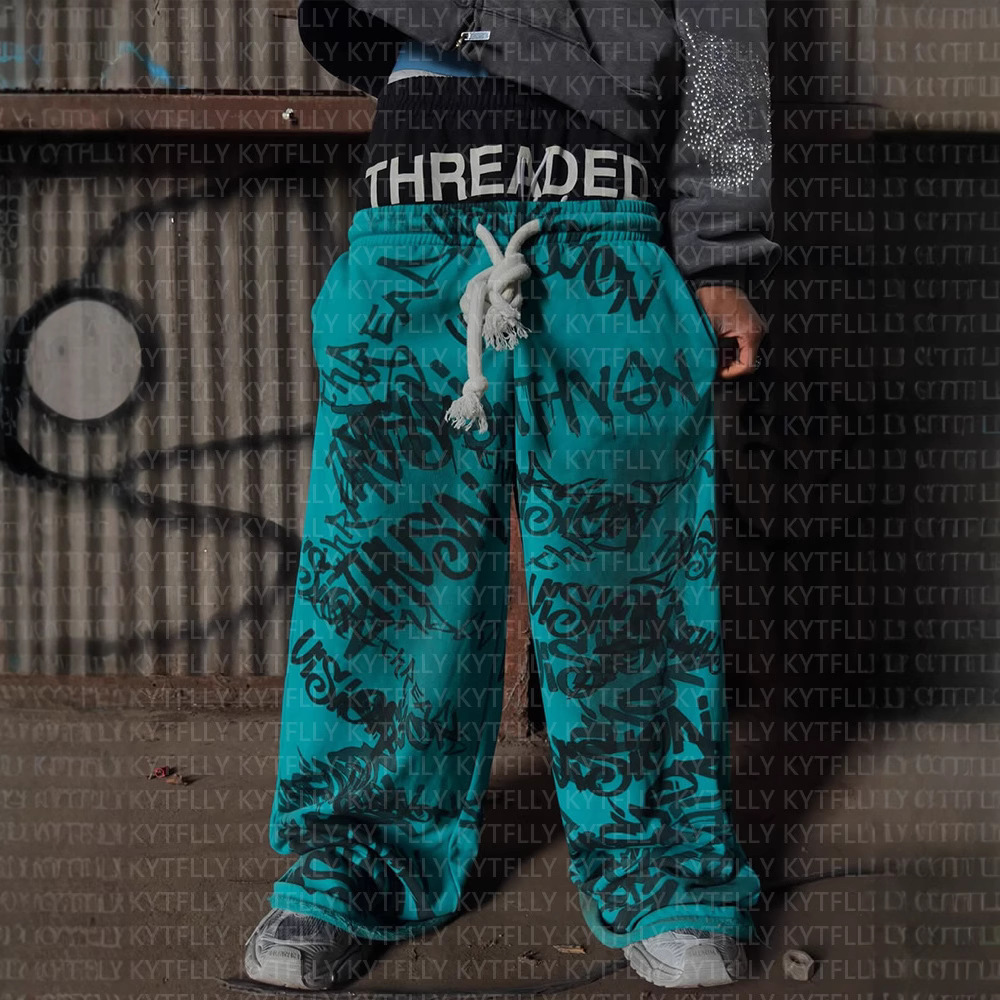 2025 New Popular Print Wide Leg Pants Fake Two Teen Hip Hops HZ1208